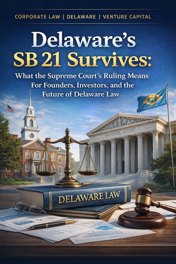 For startup founders, venture investors, and the transactional lawyers who work with them, this ruling is genuinely important. Delaware remains the governing law for the overwhelming majority of venture-backed companies, and SB 21 changes, in concrete and practical ways, how controller transactions are structured, how minority shareholders can challenge board decisions, and how much leverage a litigant can extract from a Section 220 books-and-records demand. Let me walk through what happened, why it matters, and what you should be doing about it.